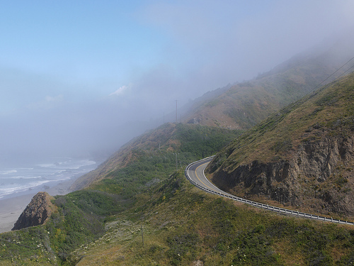 Marin county turned out to be a leafy utopia with streets all named after trees, where rakish middle aged women walked red setters and Afghan hounds and where grand houses lined up after each other, divided by rhododendron. Whilst I perused a menu outside a cafe, trying to decide which sandwich I would choose if I could afford one, which I could not, I definitely could not, a man attired in a waistcoat and sporting a thin goatee offered to buy me breakfast. Afterwards he spent ten minutes calling friends of his further north who could help me out in some fashion or offer me a place to sleep. It's another charm of the US - more often people don't wonder how they might be able to help, the approach is more - I'm going to help, and here's how.